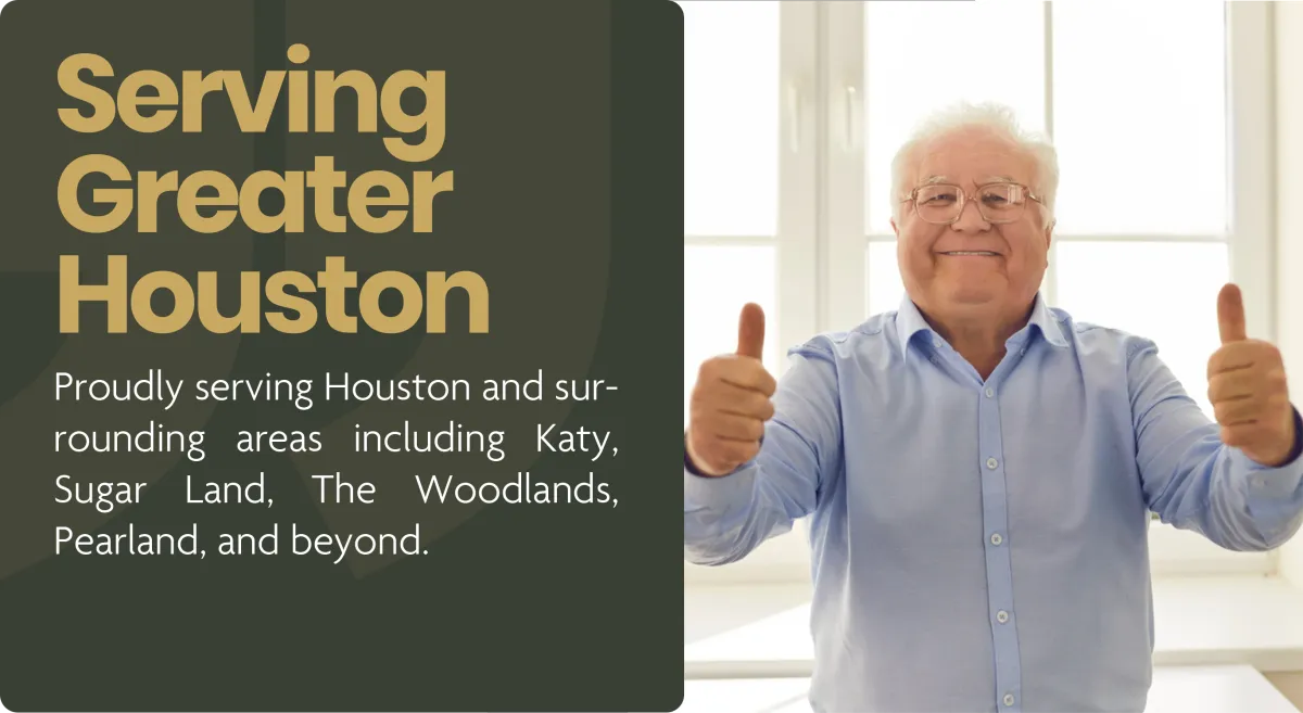 We're based in Houston and primarily serve Greater Houston and surrounding areas including Katy, Sugar Land, The Woodlands, Pearland, Missouri City, Friendswood, League City, and beyond.